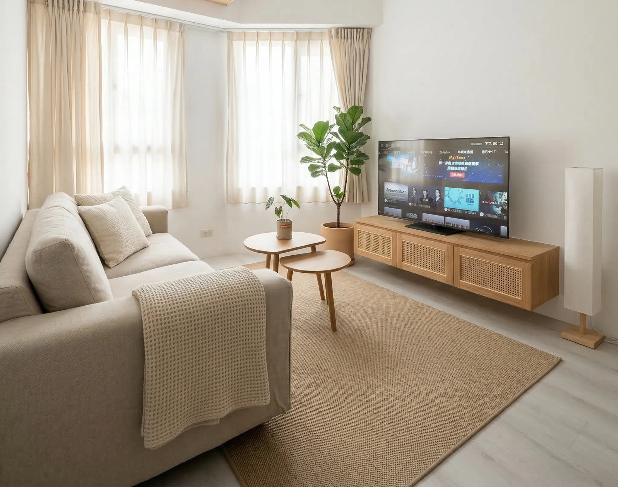 無印テイスト (Muji Taste) Embracing the Muji lifestyle: A cozy 2-bedroom apartment tailored for two people and a pet to enjoy a simple, clutter-free life. *小戶型 2房1廳 *坪數:18坪 *情侶2人加寵物的無印生活