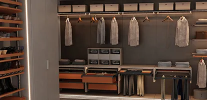 德國品牌,台灣有正式代理。更衣室收納配件品項最齊全——從升降衣桿、旋轉鞋架到褲架拉籃,一家買齊。很多設計師點名用他們家的衣物間系列,整合性非常高。